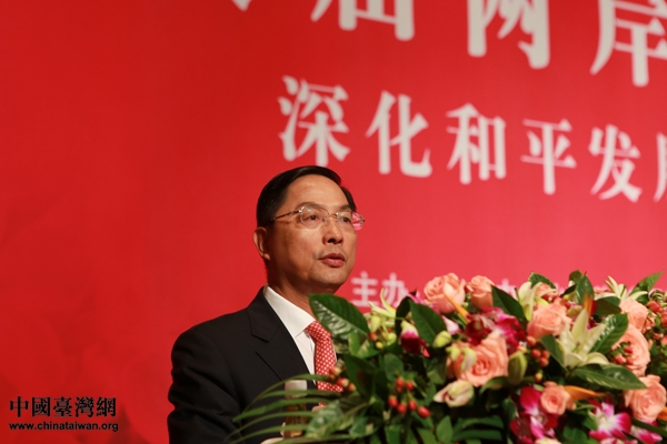 图:中共中央台办特邀嘉宾蒋耀平在第八届两岸经贸文化论坛上作题为《四年来两岸经济关系的回顾及对未来的展望》的主题演讲。(中国台湾网 于斯文 摄)