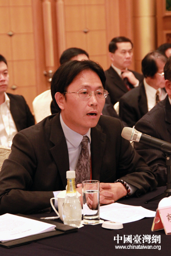 中共中央台办特邀专家肖夏勇在第八届两岸经贸文化论坛分论坛“扩大文教交流”议题的专题研讨时发言。(中国台湾网 杨丽 摄)
