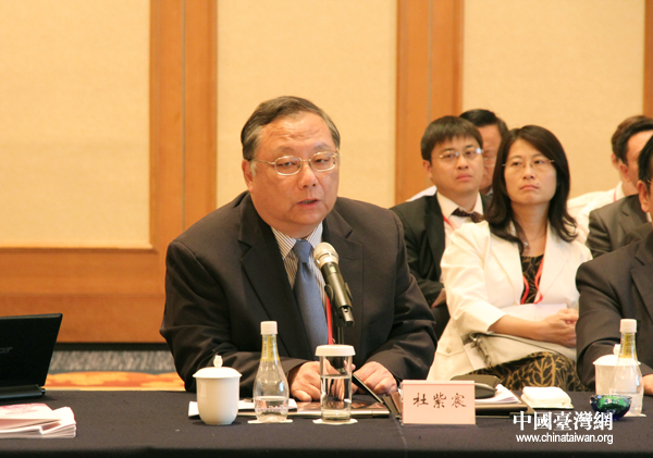 杜紫宸发表了题为《深化两岸产业合作,鼓励扩大双向投资》的主题演讲。(中国台湾网 杜紫宸 摄)