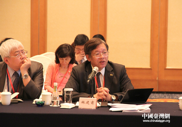 28日下午,第八届两岸经贸文化论坛进行了题为“深化经贸合作”的专题研讨。台湾大学经济学教授林建甫发表了题为《两岸金融合作与展望》的主题演讲。(中国台湾网 马迪 摄)