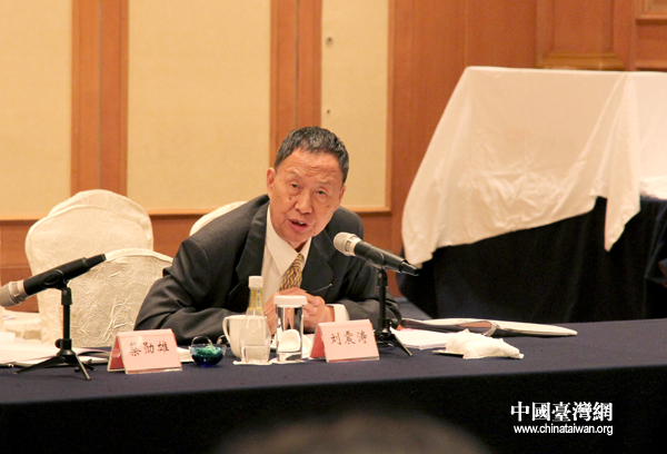 中国台湾网7月28日哈尔滨消息 28日下午,在哈尔冰举行的第八届两岸经贸文化论坛进行了题为“深化经贸合作”的专题研讨。 清华大学台湾研究所所长刘震涛和中国国民党国政研究基金会副董事长蔡勋熊共同主持了议题研讨。(中国台湾网记者 普燕)