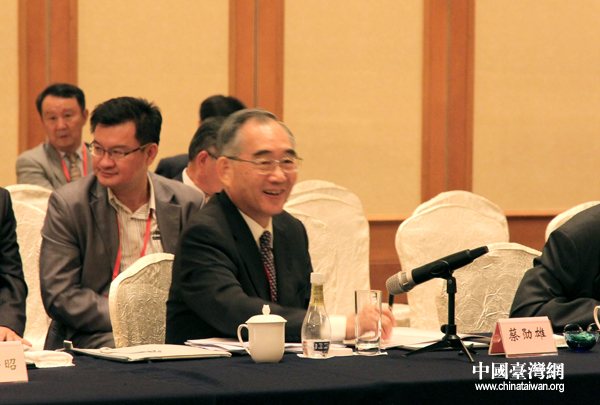 第八届两岸经贸文化论坛进行了题为“深化经贸合作”的专题研讨。清华大学台湾研究所所长刘震涛和中国国民党国政研究基金会副董事长蔡勋熊共同主持了议题研讨。图为中国国民党国政研究基金会副董事长蔡勋熊。(中国台湾网 马迪 摄)
