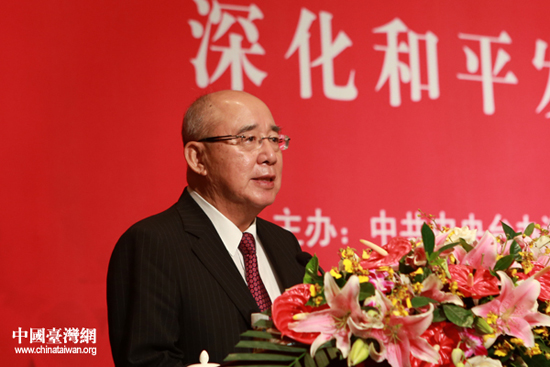 中国国民党荣誉主席吴伯雄在第八届两岸经贸文化论坛闭幕式上致辞。(中国台湾网 于斯文 摄)