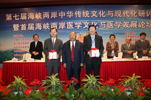 浙江中医药大学副校长连建伟将自己所著的《金匮要略方论讲稿》一书赠予台湾长庚大学医学院和台湾中山医学大学
