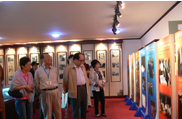 与会学者在重庆抗战遗址博物馆认真观看展板