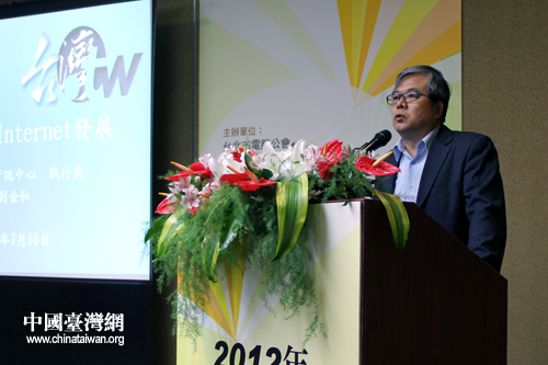 台湾网络资讯中心执行长刘金和在分论坛“基于移动互联网的互动应用”现场。(中国台湾网 董子誉 摄)