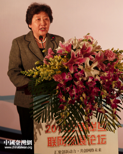 工信部总工程师王秀军今日上午在2011互联网论坛上致辞时提出了“十二五”期间工信部对推进互联网持续健康发展的五项具体措施。(中国台湾网 赵辉 摄)