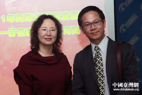 中国台湾网总经理兼总编辑刘晓辉(左)与台湾嘉宾合影。(中国台湾网 于斯文 摄)