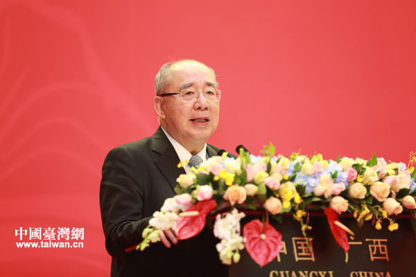 10月26日,中国国民党副主席林丰正主持第九届两岸经贸文化论坛开幕式并致开幕词。(中国台湾网 于斯文 摄)