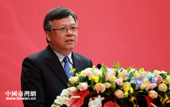 在论坛主题演讲中,中国国民党国政研究基金会特邀台湾著名地震专家黄万翔博士,发表有关两岸未来经贸文化合作的方向与策略主题演讲。(中国台湾网 于斯文 摄)