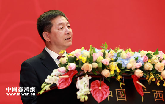 第九届两岸经贸文化论坛26日下午进行主题演讲,中共中央台办副主任叶克冬、中国国民党副秘书长林德瑞共同主持了主题演讲。图为叶克冬主持主题演讲。(中国台湾网 于斯文 摄)