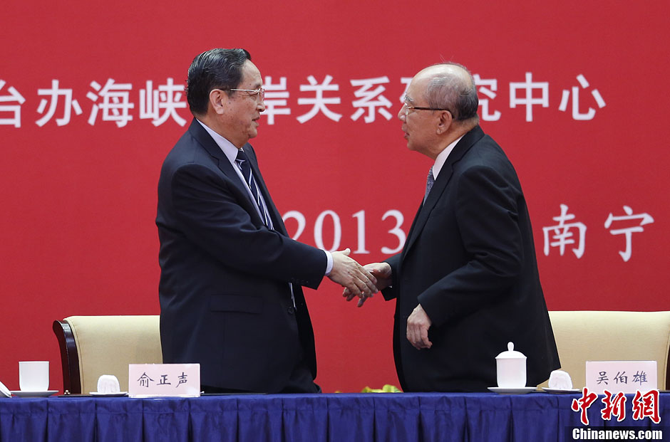 10月27日,第九届两岸经贸文化论坛在广西南宁闭幕,中共中央政治局常委、全国政协主席俞正声,中国国民党荣誉主席吴伯雄等人出席。中新社发 杜洋 摄