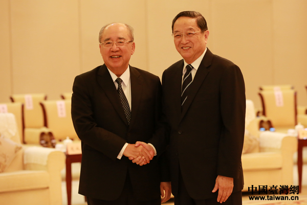 中国台湾网南宁消息 25日下午,中共中央政治局常委、全国政协主席俞正声在广西南宁会见了中国国民党荣誉主席吴伯雄及应邀参加第九届两岸经贸文化论坛的两岸各界人士。(中国台湾网记者 于斯文)