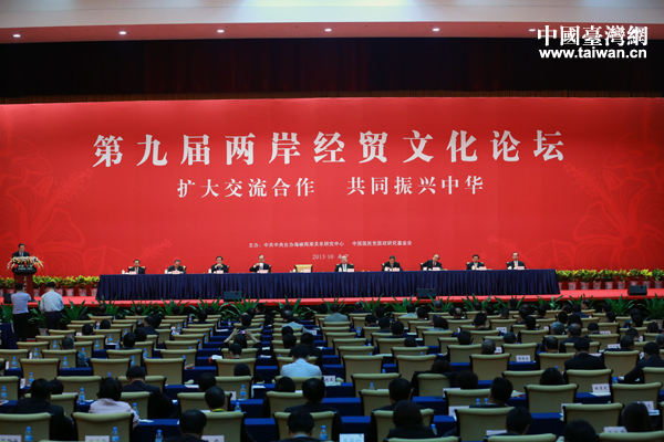 10月27日下午,中共中央台办主任张志军主持第九届两岸经贸文化论坛闭幕式,并对论坛进行小结。(中国台湾网 于斯文 摄)
