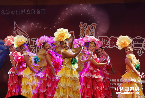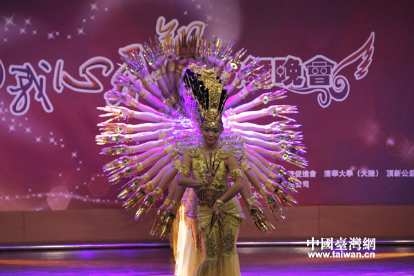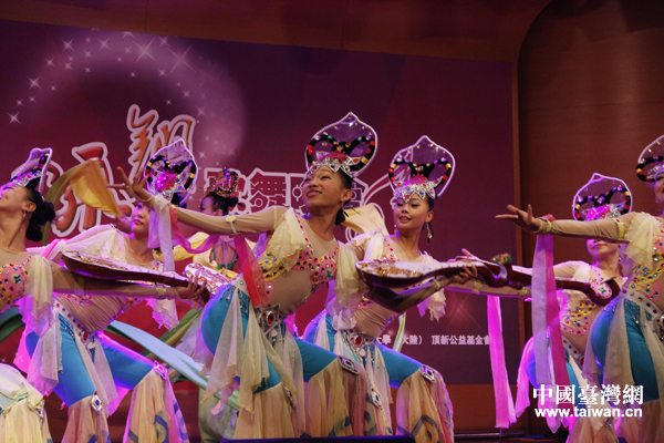 第六届中华文化快车——北京心灵呼唤艺术团7日晚间在台湾中国文化大学举办歌舞晚会,图为演员们表演敦煌舞蹈《千手观音》。(中国台湾网 普燕 摄)