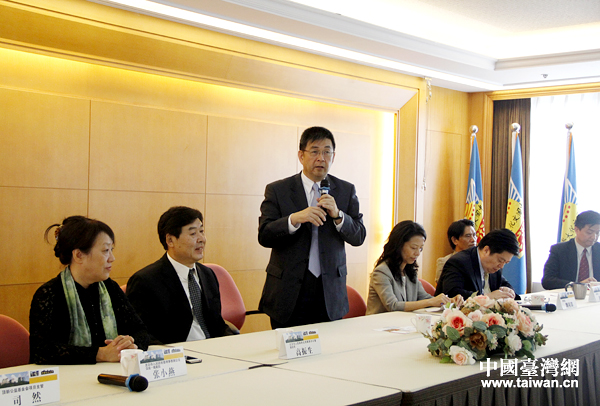 中国文化大学校长李天任对交流团的到来表示热烈的欢迎,并介绍学校概况。(中国台湾网 普燕 摄)