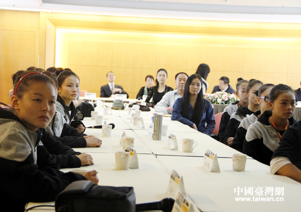 北京心灵呼唤艺术团团员们观看中国文化大学宣传片,了解该校情况。(中国台湾网 普燕 摄)