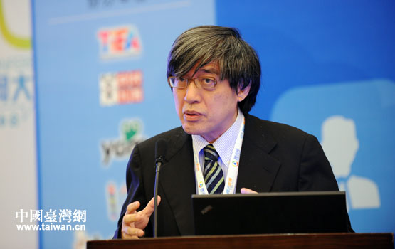 台北市电脑公会顾问、台湾网路暨电子商务产业发展协会理事长詹宏志先生代表论坛主办方宣读两岸电子商务发展倡议书。(中国台湾网 于斯文 摄)