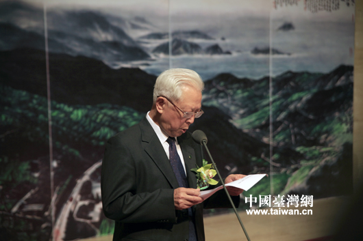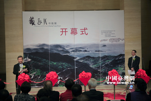 台湾著名画家黄永川书画展9月24日在北京中国美术馆开幕,民革中央副主席郑建邦主持开幕式(中国台湾网 芜同 摄)