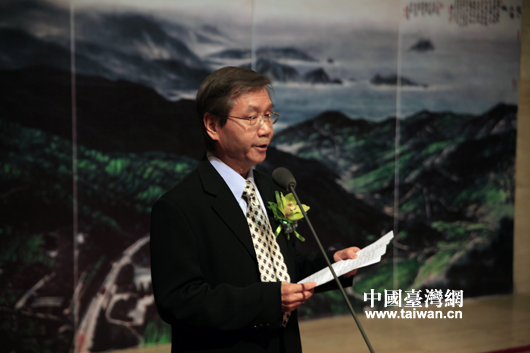 台湾著名画家黄永川书画展9月24日在北京中国美术馆开幕,周铁农在开幕式上致辞(中国台湾网 芜同 摄)
