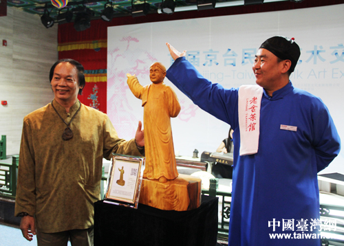 中国台湾网9月27日北京消息 首届京台民间艺术交流展于昨日在北京老舍茶馆隆重开展,本次展览由北京市台湾同胞联谊会、中华青年企业家协会主办,北京大碗茶文化发展有限公司、北京老舍茶馆有限公司承办,展出为期一个月。