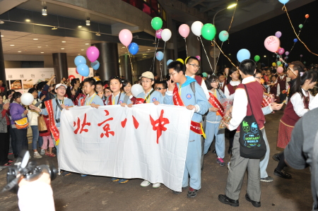 来自北京市第八中学的学生参加元宵走街(邢庆 摄)