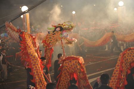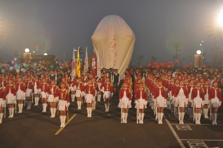 在上海世博会结束后落户台湾新竹市的世博台湾馆广场上,华灯高照,夜空炫彩。京台两地师生与新竹市民一起,以“世博台湾,情归新竹”为主题揭开新竹元宵走街十二周年活动的序幕。京台同学分别进行文艺表演并共同施放8888盏天灯,为两岸祈福。踩街队伍沿忠孝路、民族路等地欢唱前行,来自北京的同学们统一着装、步调轻盈,尽情挥舞着自己制作的“乐器”,节拍整齐地用地道的闽南语喊出“两岸同心、庆元宵”等口号,与沿街的新竹市民相互贺岁,祝福新春。