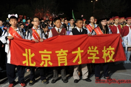 来自北京市育才学校的学生参加元宵走街(邢庆 摄)
