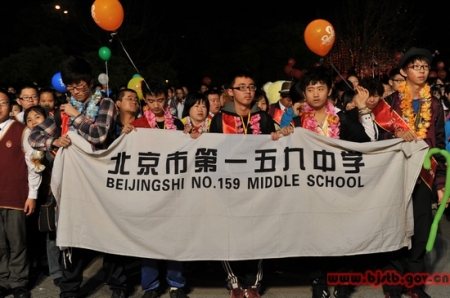 来自北京市第一五九中学的学生参加元宵走街(邢庆 摄)