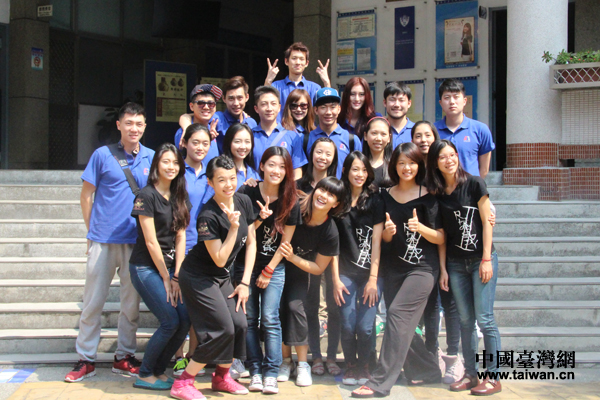 10月17日,第七届中华文化快车——北京电影学院赴台演出话剧《永远的微笑》代表团参访台中体育运动大学,图为北京电影学院学生与台中体育运动大学体育舞蹈学系学生合影。(中国台湾网 张洁 摄)