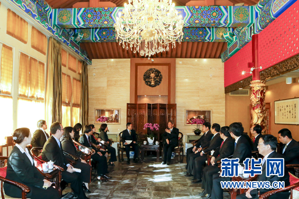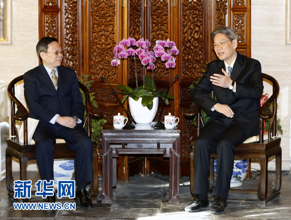 11月12日,国务院台湾事务办公室主任张志军(右)在北京与台湾方面陆委会主委王郁琦会面。 新华社记者沈伯韩摄