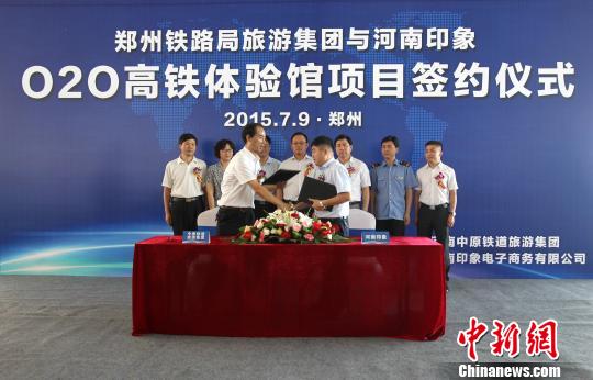 中新网郑州7月9日电 (记者 王中举)7月9日,“互联网+”电子商务项目成功接入河南高铁商圈媒体发布会暨郑州铁路局与河南印象O2O高铁体验馆项目签约仪式在郑州东站举行,200余名来自河南企业界和商界代表参加签约仪式。