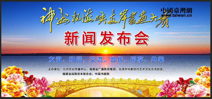 中国台湾网6月24日讯 6月27日下午,由九州文化传播中心、福建省广播影视集团等多家单位主办的《首届“神州杯”海峡两岸书画大赛》活动将在北京举办新闻发布会。