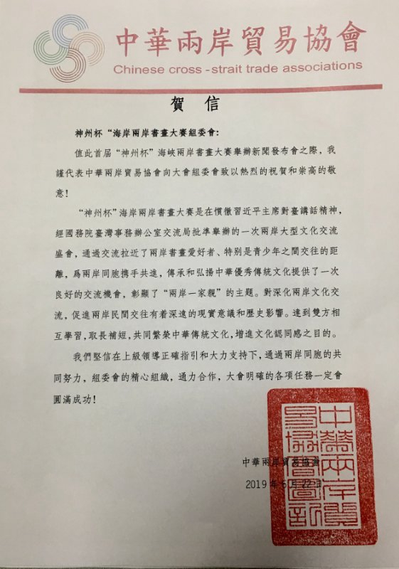 中华两岸贸易协会向书画大赛组委会发来贺信