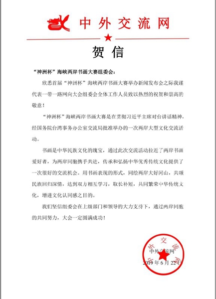 中外交流网向书画大赛组委会发来贺信