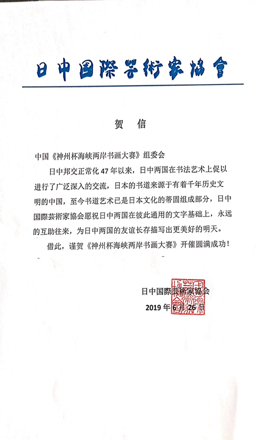 日中国际艺术家协会向大赛组委会发来贺信