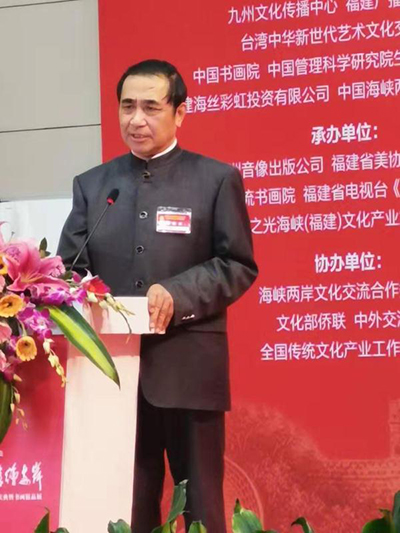 大赛颁奖庆典暨书画精品展于12月22日上午在厦门市文化艺术中心开幕,九州文化传播中心主任王明鉴致欢迎词并宣布大会开幕。台湾书画代表团团长、新党主席郁慕明在开幕式致辞表示,两岸同胞拥有相同的血脉和语言,民众应多交流,共同弘扬中华传统文化。