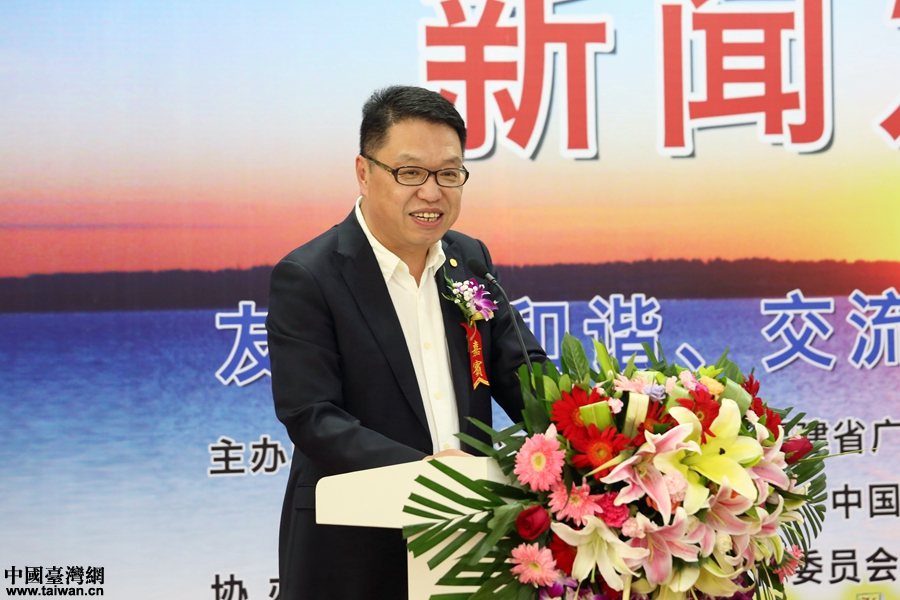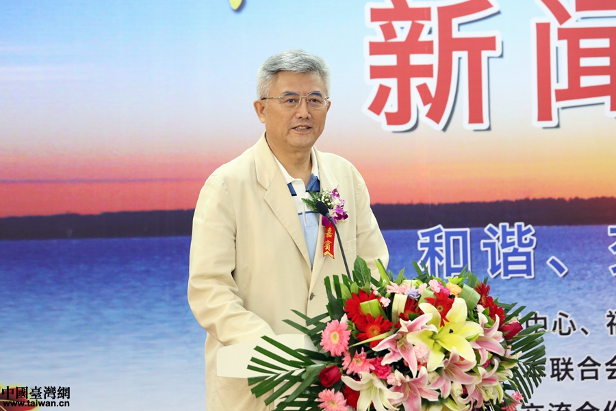 九州文化传播中心主任王明鉴在发布会上宣布大赛开幕。(中国台湾网 尹赛楠 摄)