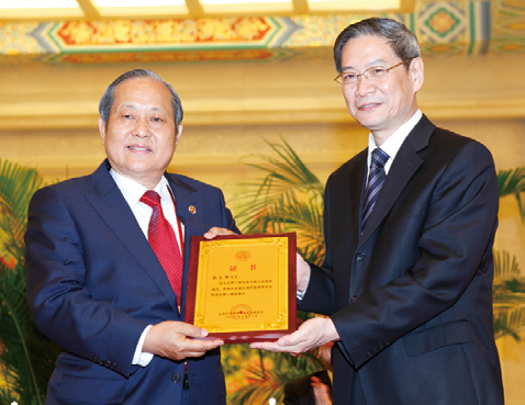 海协会会长陈德铭与张文潭监事长等在一起。