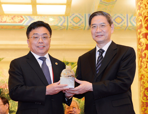 中共中央台办、国务院台办主任张志军会见郭山辉荣誉会长。