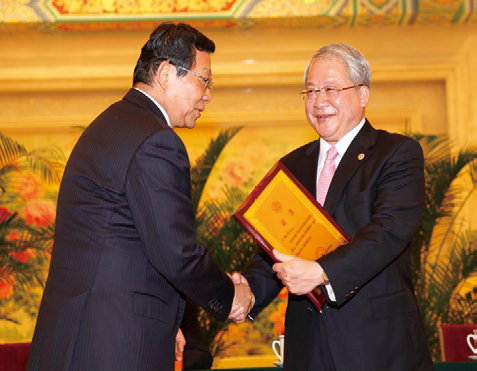 海协会会长陈德铭会见丁鲲华荣誉会长。
