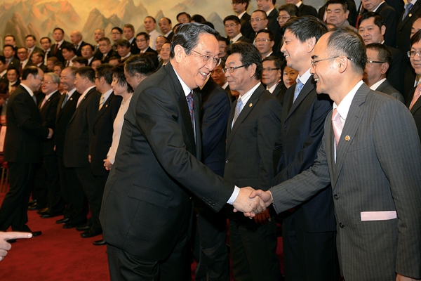 5月21日,中共中央政治局常委、全国政协主席俞正声会见全国台湾同胞投资企业联谊会第三届会员代表大会代表。(图自中新社)